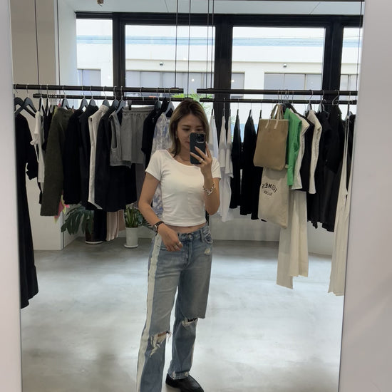 ソフトフィットなボディラインで、スカートやパンツ、どんなボトムスにも合わせて頂けるTシャツです。