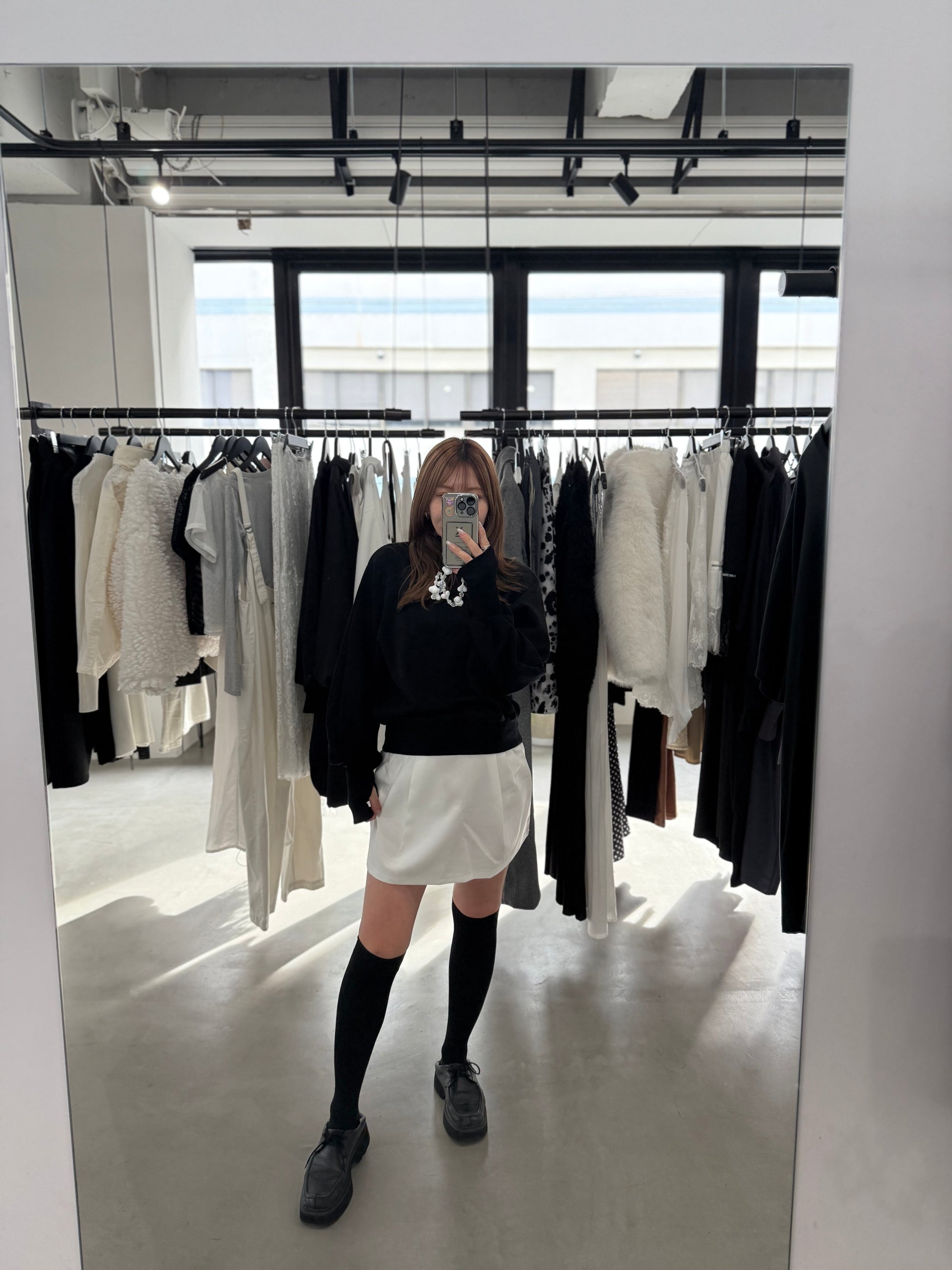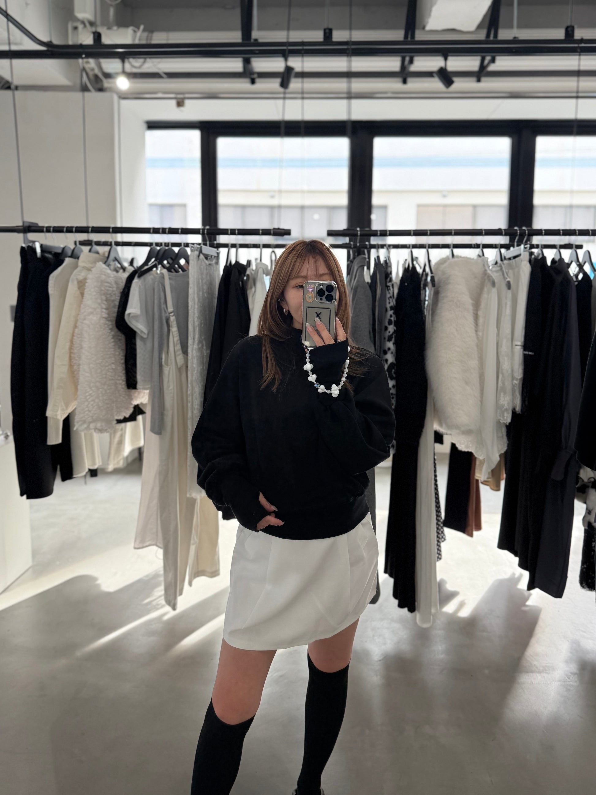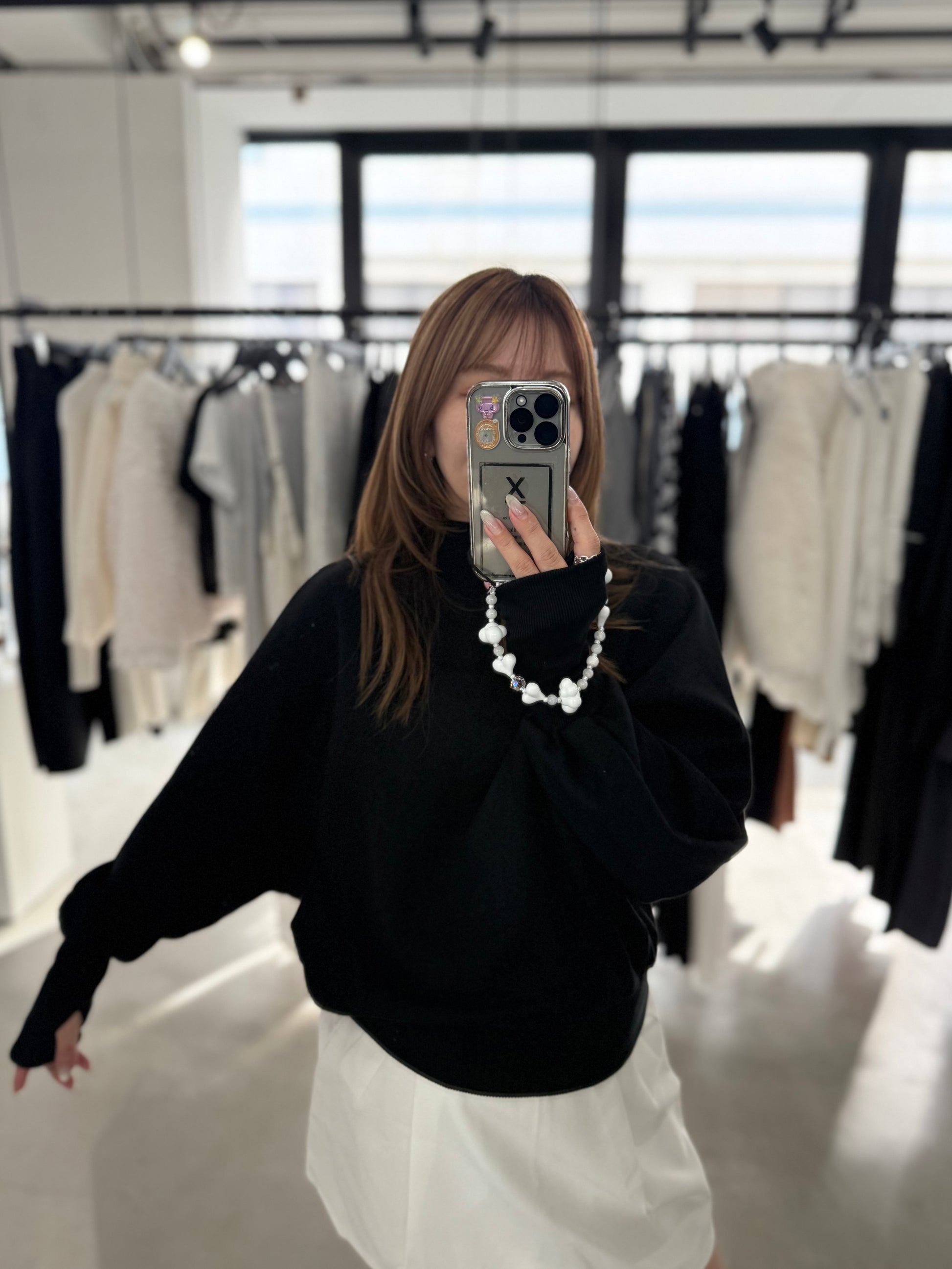 長めの袖が冬場のアウターから手の甲まで包みこみ