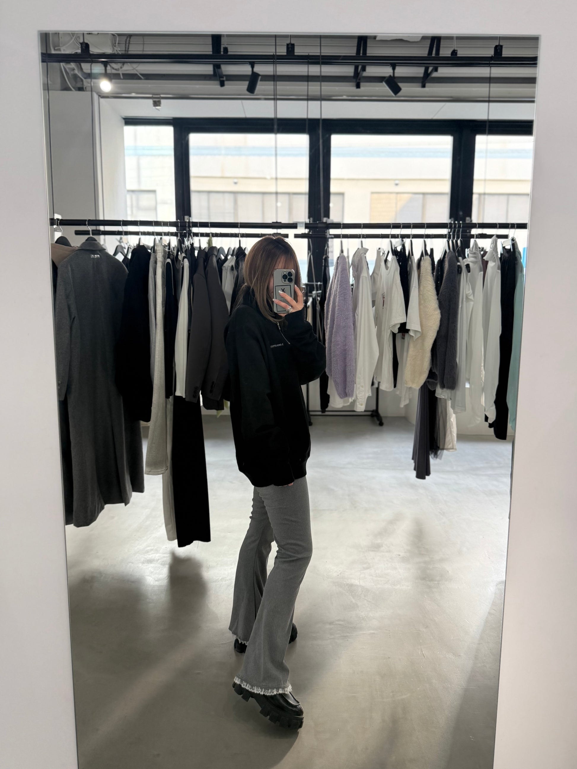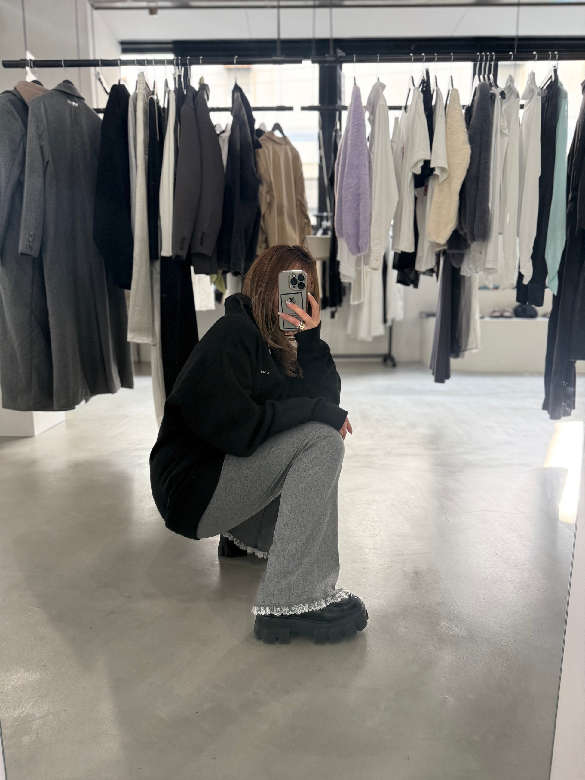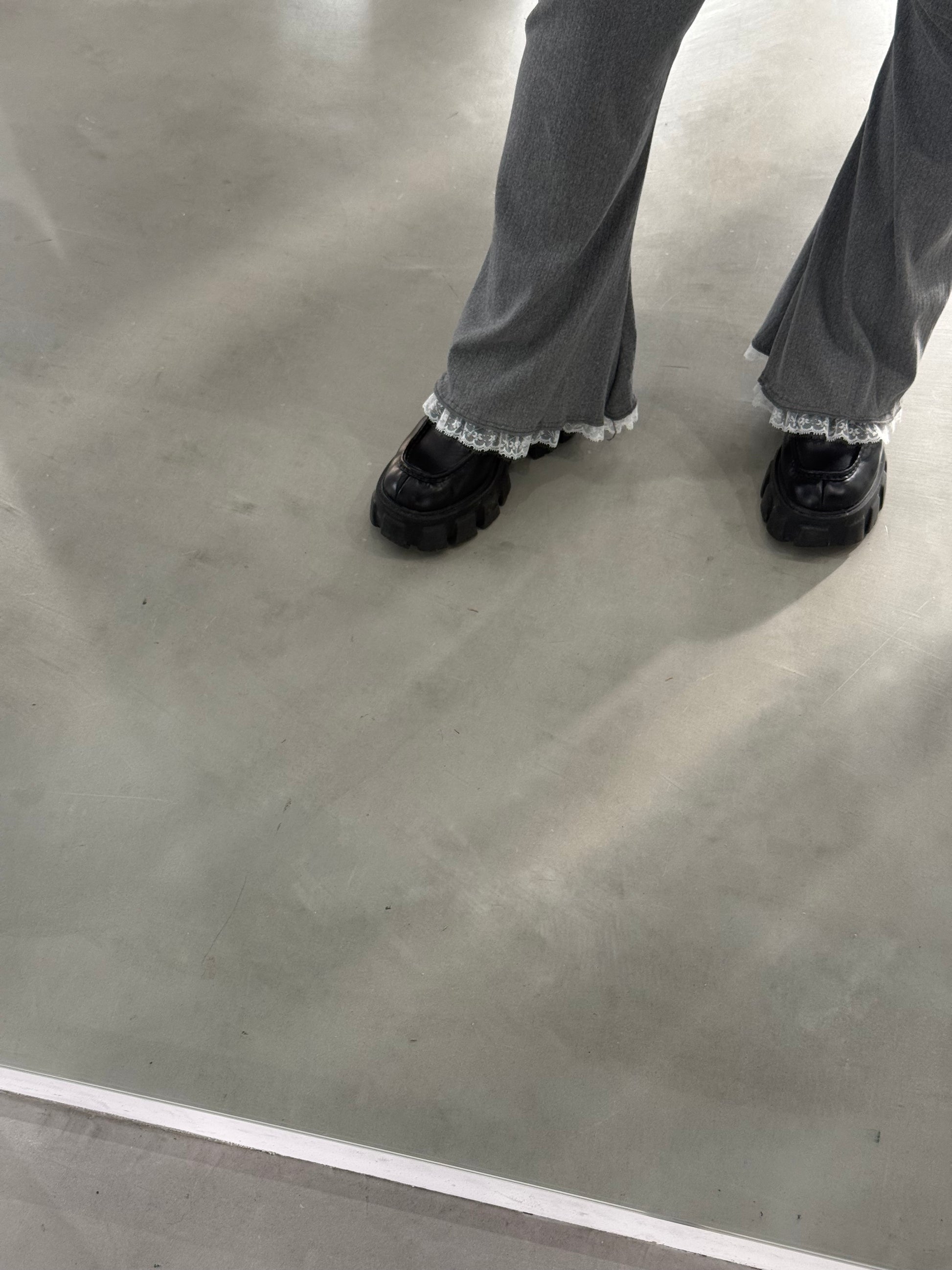 厚みのあるリブフェルト素材の肌触りのなめらかなレギンス。