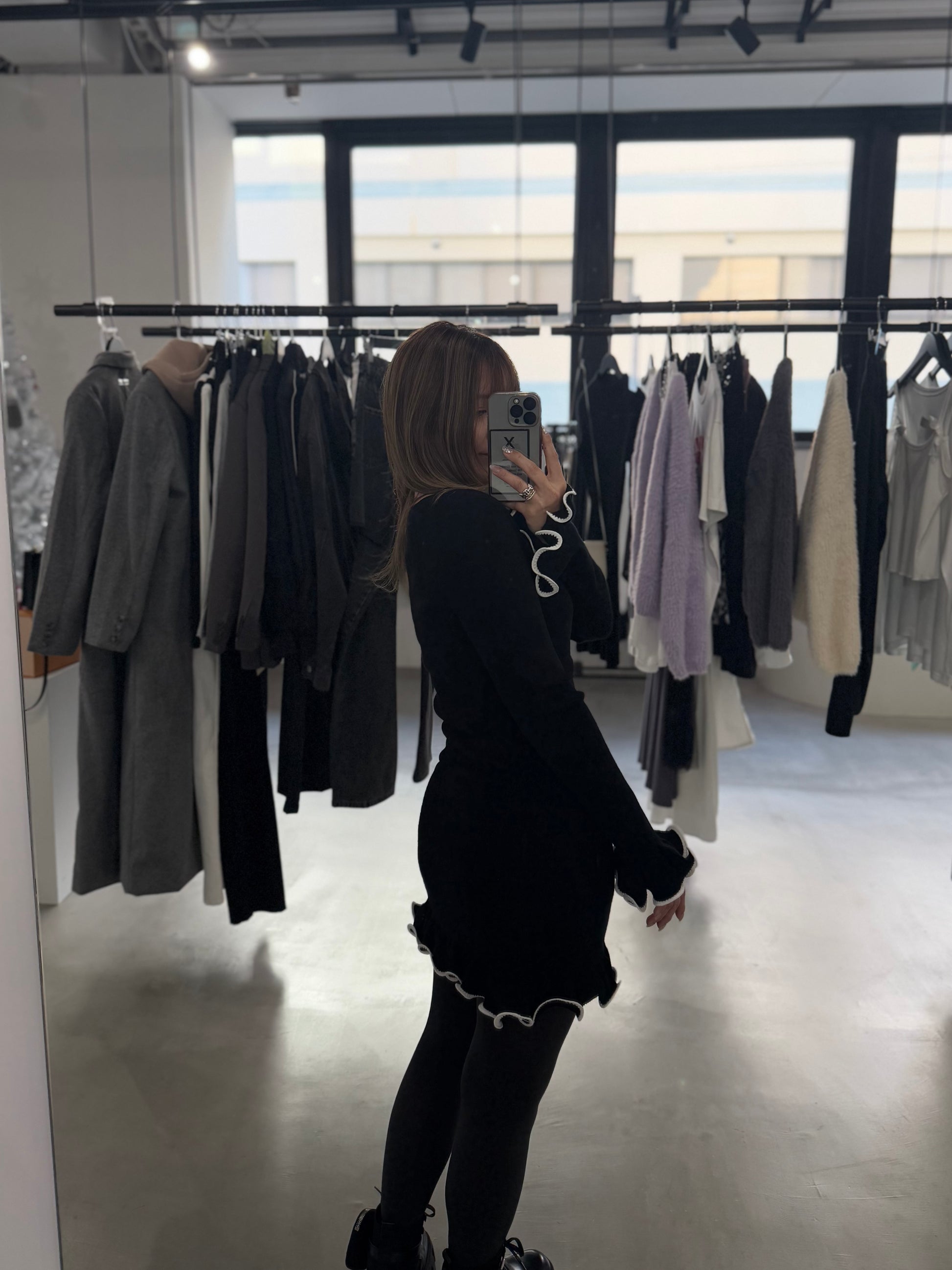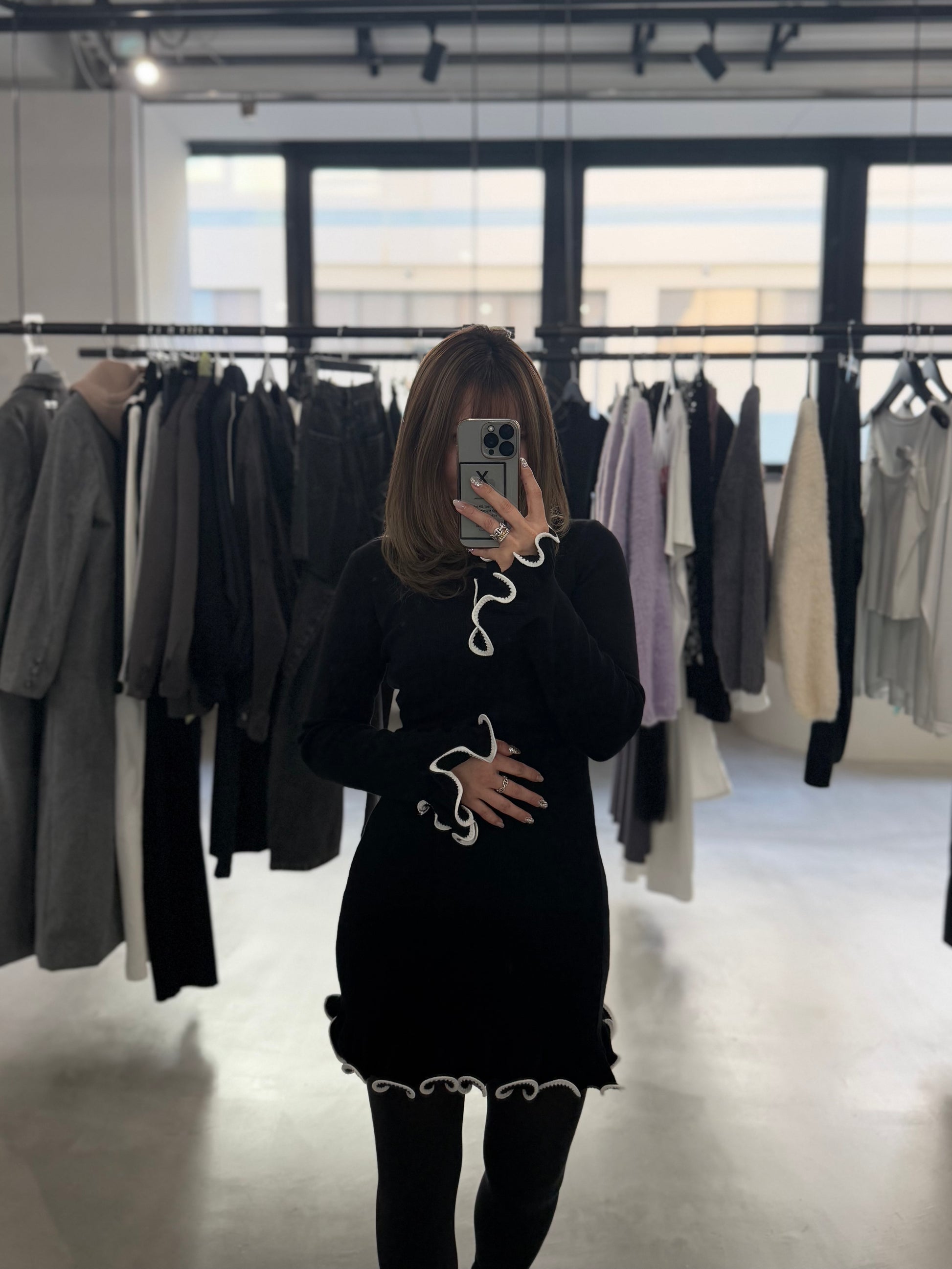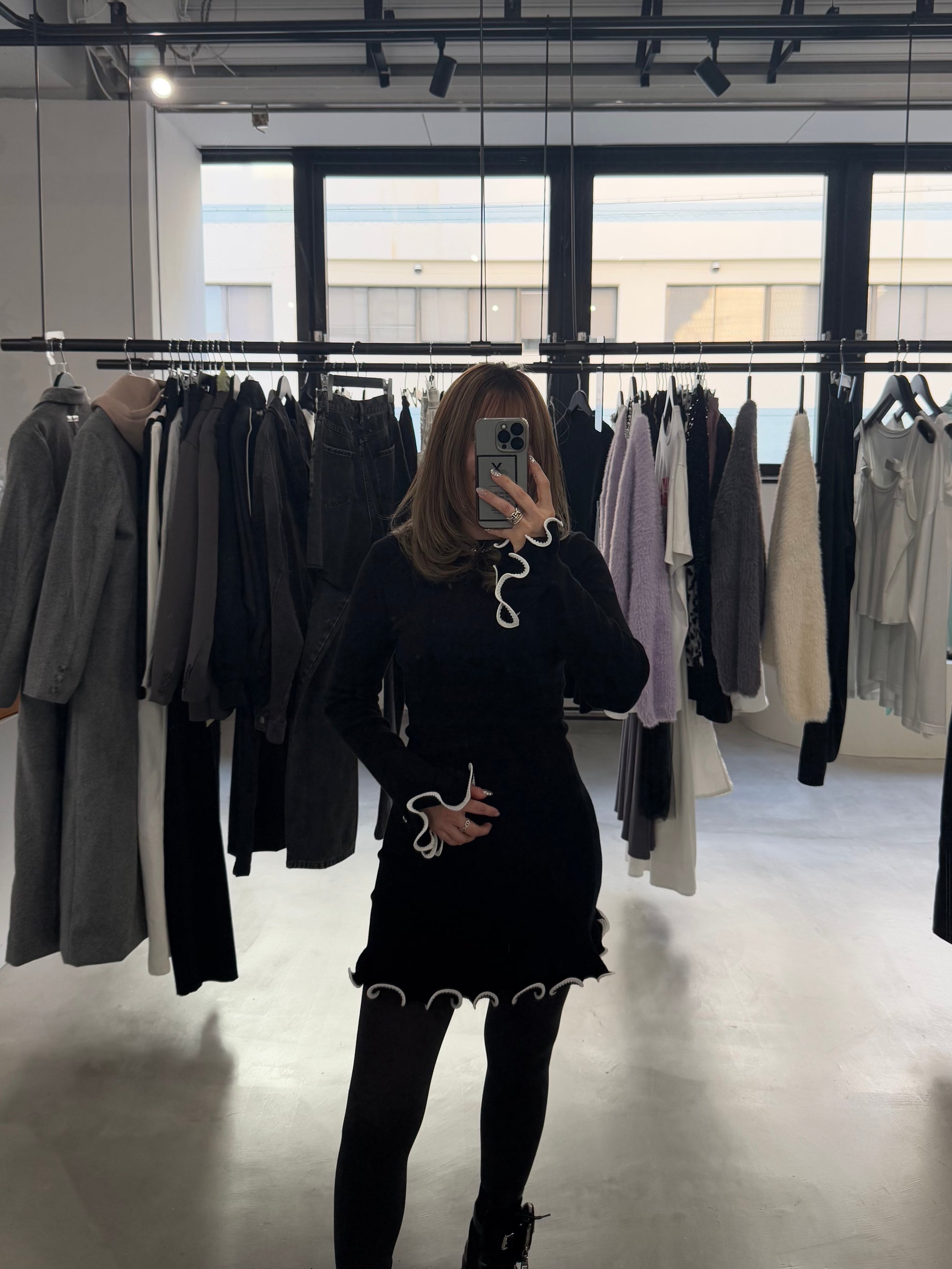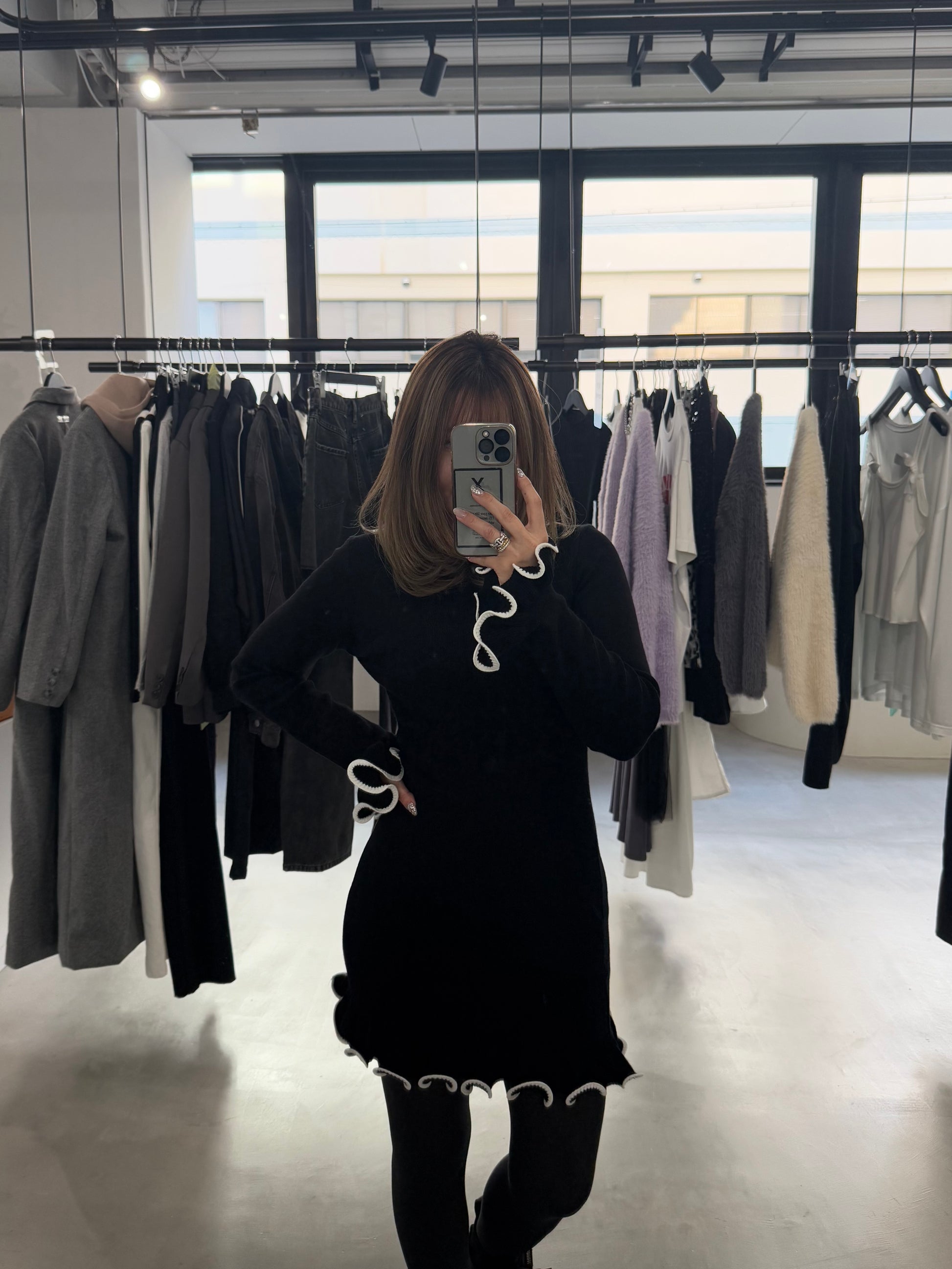 SHAKE FRILL DRESS "BLACK"
