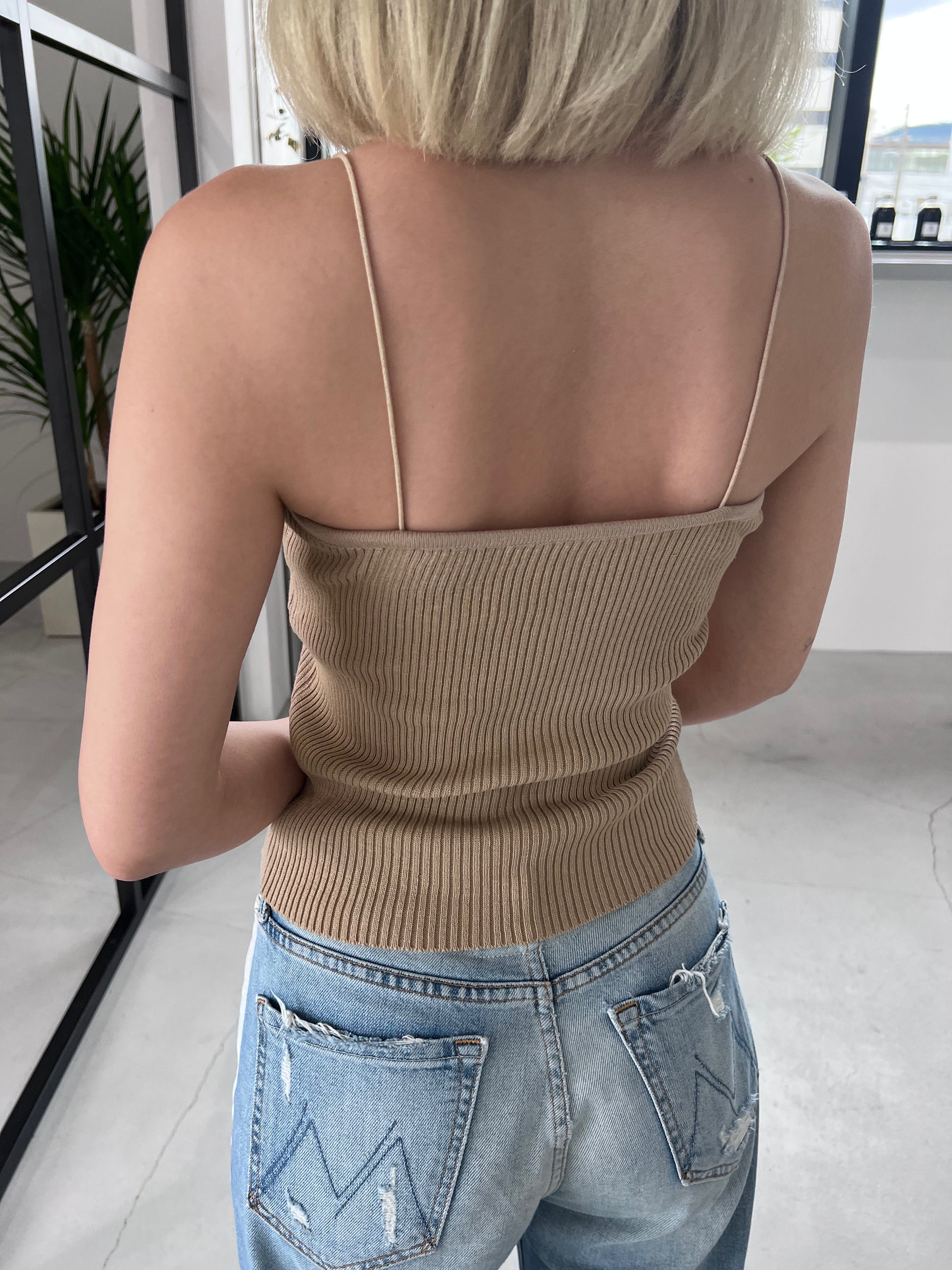 SPAGHETTI STRAP RIB CAMISOLE "MILK TEA"
