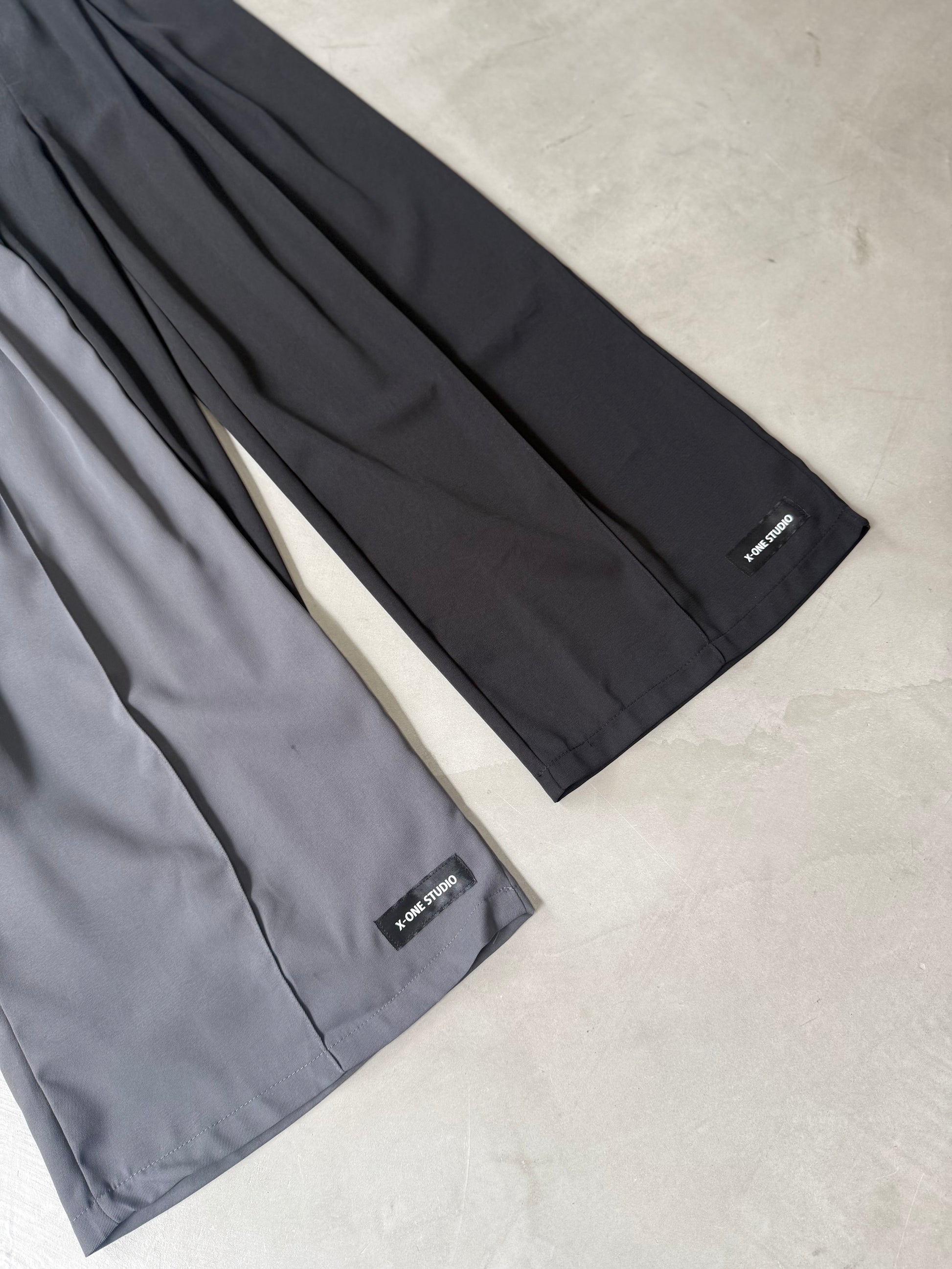 ほどよい厚みとハリ感がボディラインを拾わない大胆なワイドシルエットスラックス。