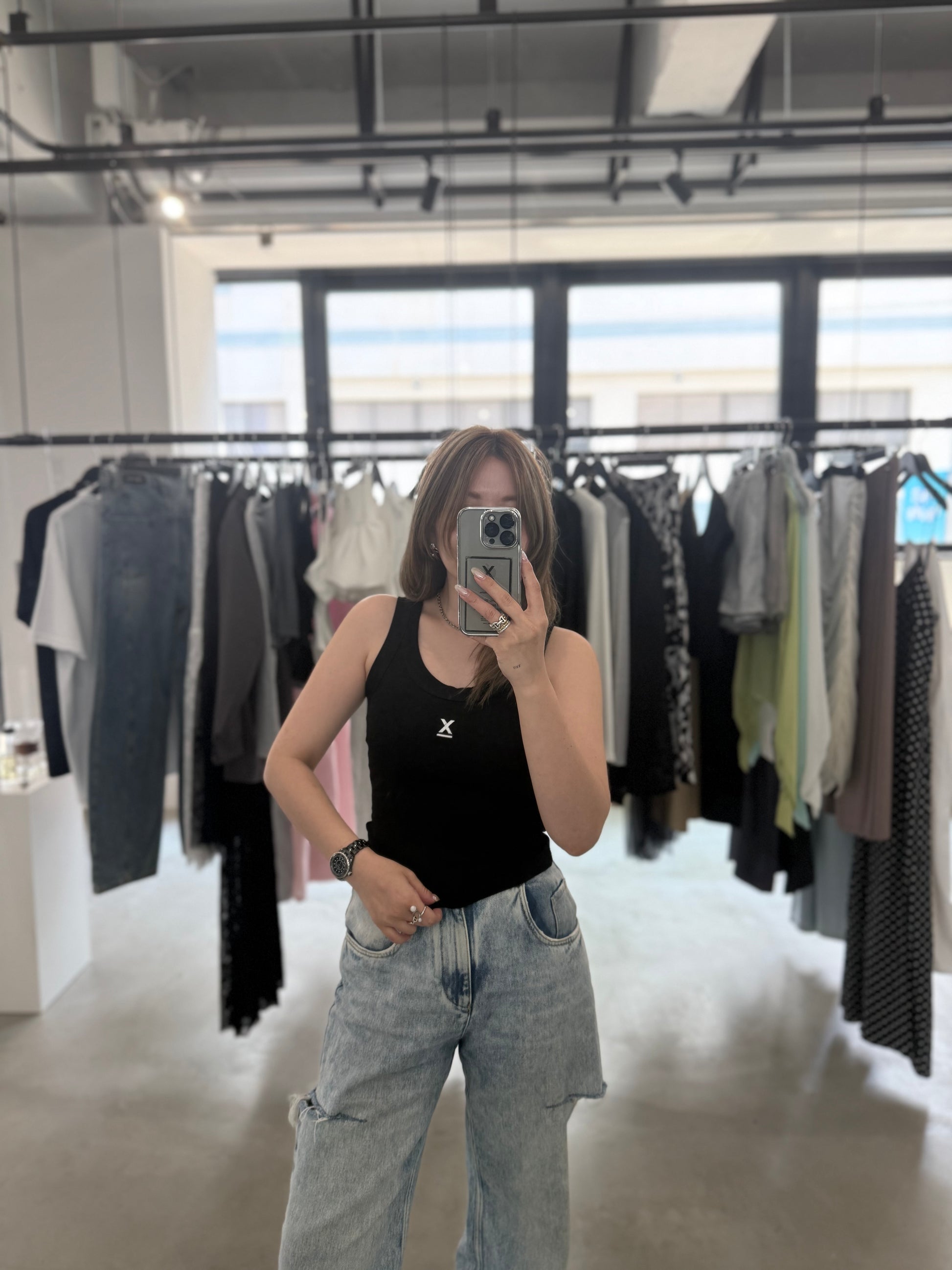 肌触り抜群のリブ素材に、シンプルな刺繍。